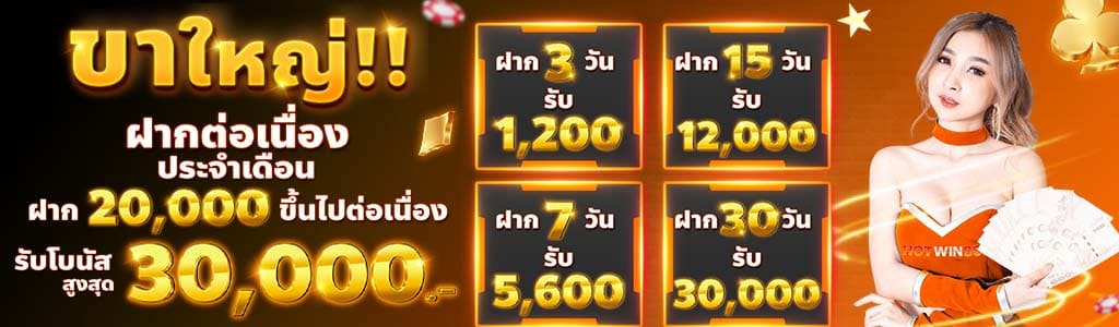 ฝาก 20,000 ขึ้นไป รับโบนัสสูงสุด 30,000 !!